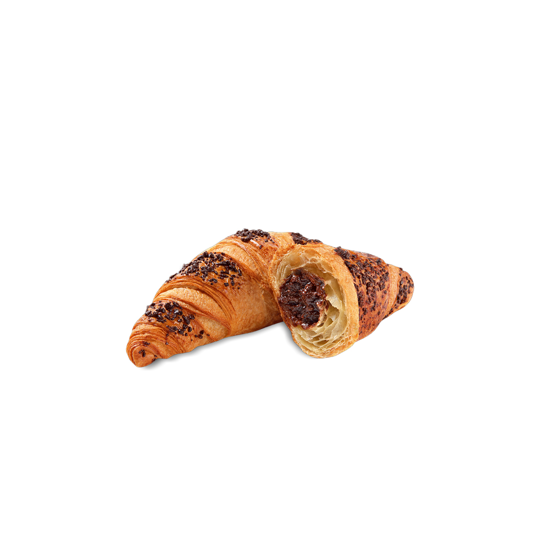 Flaky croissant filled with chocolate, warm, rich, and indulgent.