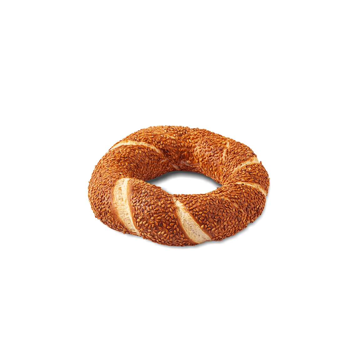Classic sesame-coated Turkish simit, crispy outside, soft inside.